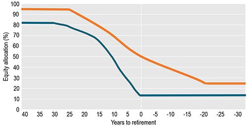- Want automatic, gradual reductions in market risk during retirement