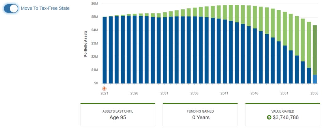 At Boulay, we use a financial planning tool—WealthNAV™—to help clients evaluate the real financial impact of moving to a tax-free state. In some cases, the income tax savings alone can be worth millions over the course of a retirement or long-term financial plan