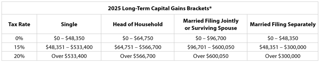 As with ordinary income tax rates and brackets, those for long-term capital gains are scheduled to return to their pre-TCJA levels (adjusted for inflation) in 2026 if Congress doesn’t extend the current levels or make other changes.